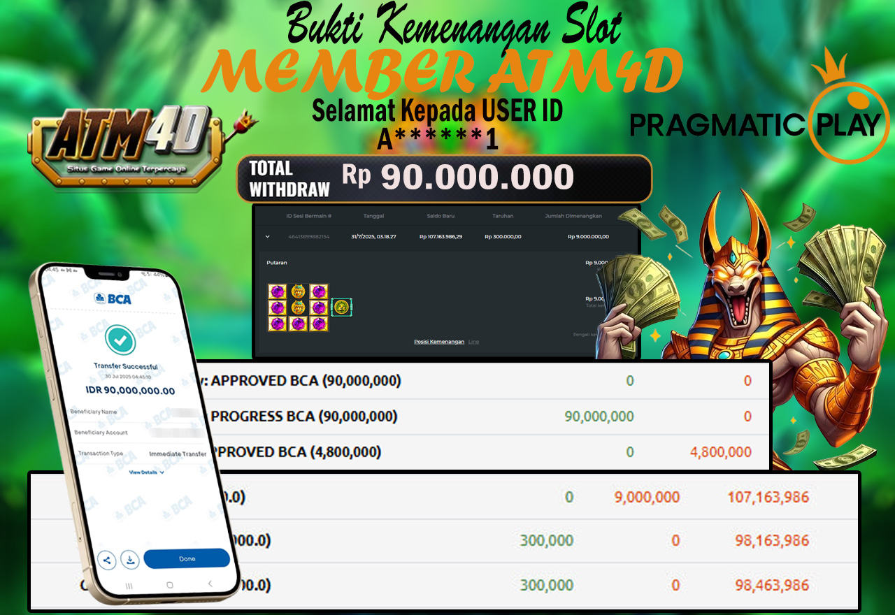 Selamat Kepada Member Yang Berhasil Mendapatkan Jackpot Dipermainan PRAGMATIC, Berikut Bukti Jackpot Member Di Situs ATM4D
