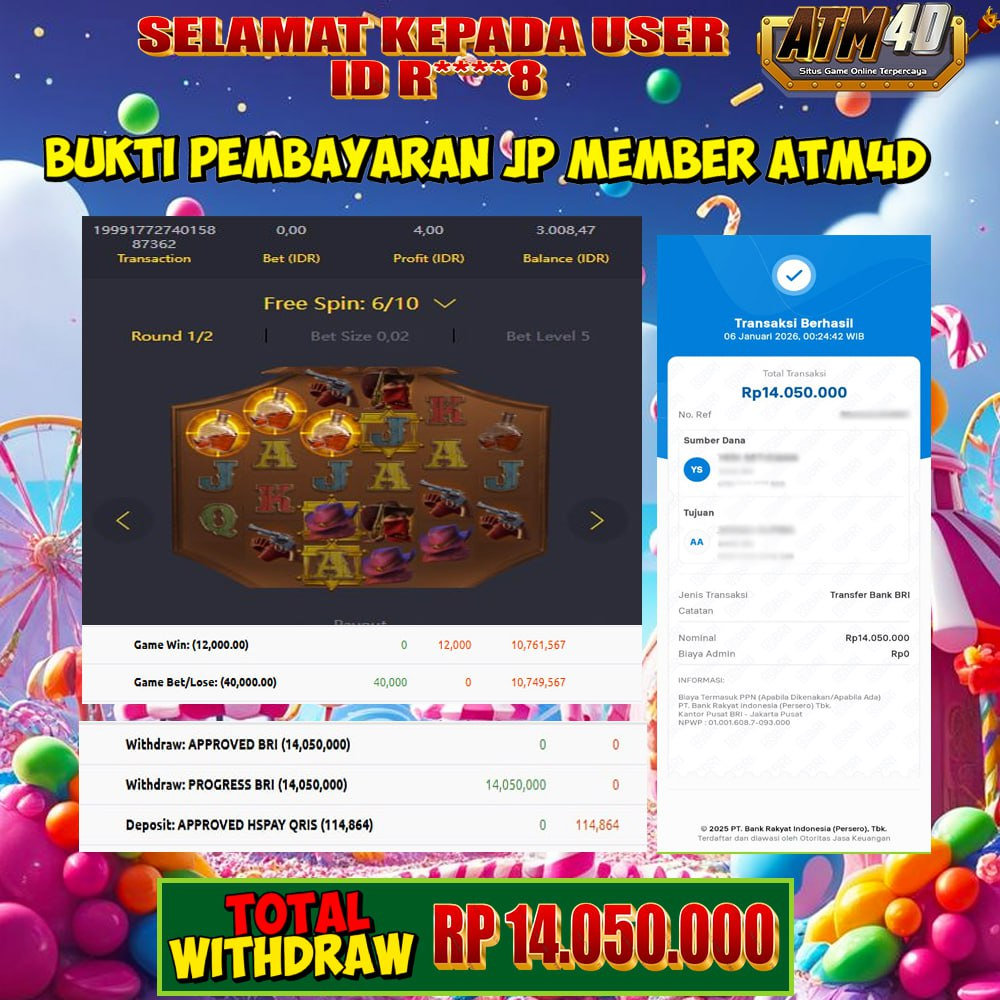 Jangan lewatkan kesempatan untuk meraih kemenangan besar. Daftar sekarang di ATM4D dan rasakan pengalaman bermain slot terbaik yang pernah ada! Putar gulungan, menangkan jackpot, dan jadilah bagian dari komunitas pemain sukses kami!