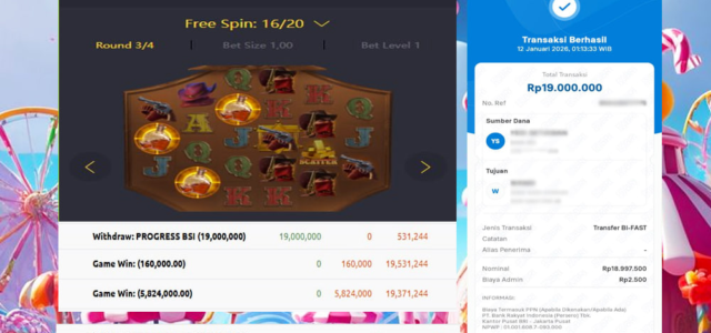 Bukti Kemenangan slot di provider PG SOFT JACKPOT SLOT BOUNTY SHOWDOWN 12 JANUARI 2026