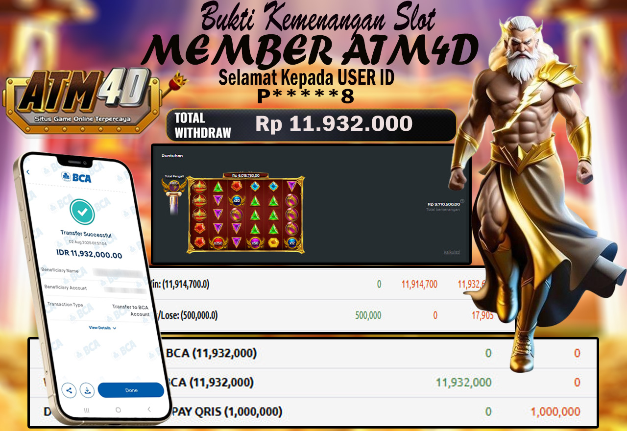 Selamat Kepada Member Yang Berhasil Mendapatkan Jackpot Dipermainan PRAGMATIC, Berikut Bukti Jackpot Member Di Situs ATM4D