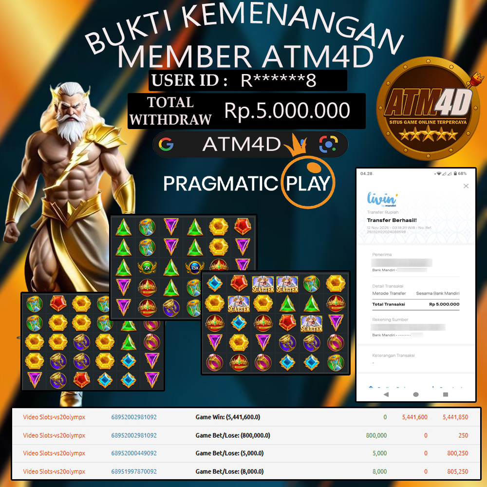 Selamat Kepada Member Yang Berhasil Mendapatkan Jackpot Dipermainan PRAGMATIC PLAY, Berikut Bukti Jackpot Member Di Situs ATM4D