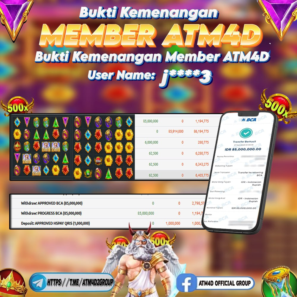 Selamat Kepada Member Yang Berhasil Mendapatkan Jackpot Dipermainan PRAGMATIC PLAY, Berikut Bukti Jackpot Member Di Situs ATM4D