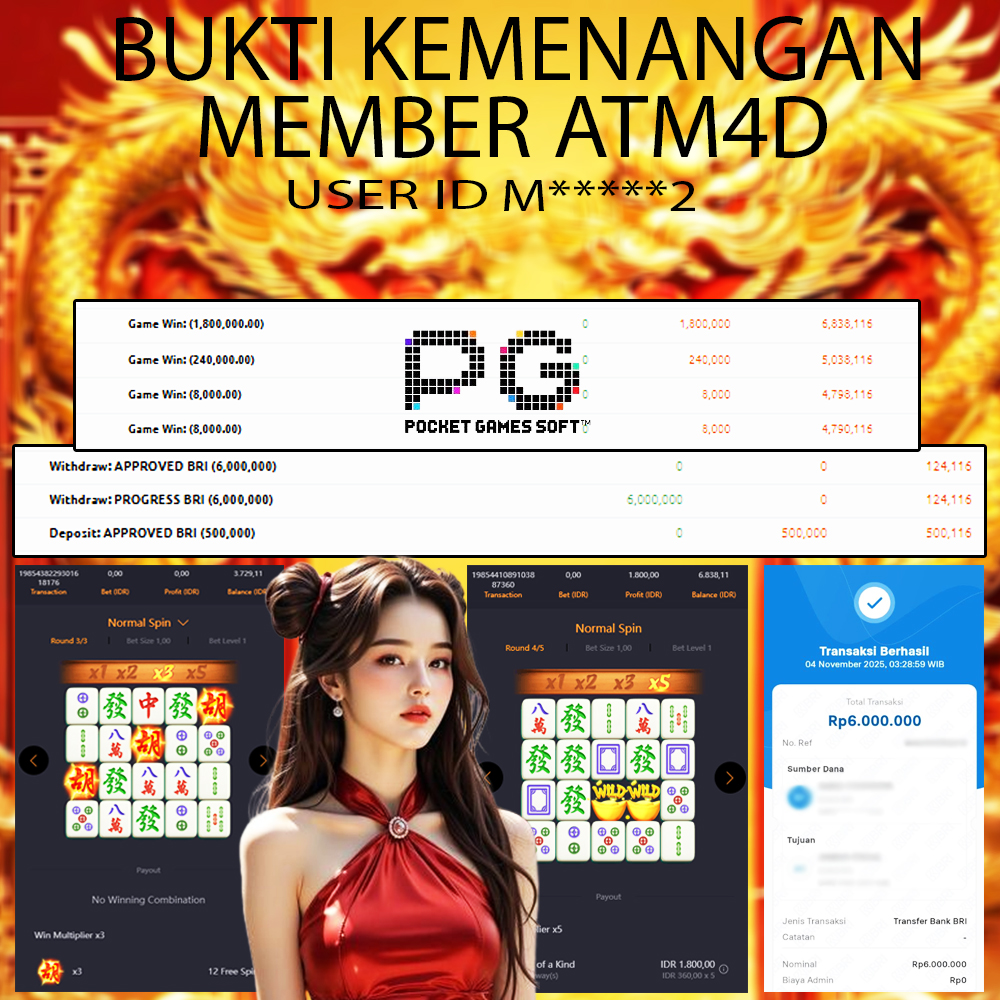 Selamat Kepada Member Yang Berhasil Mendapatkan Jackpot Dipermainan PG SOFT, Berikut Bukti Jackpot Member Di Situs ATM4D