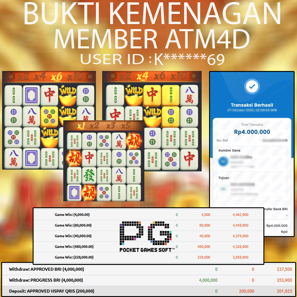 Selamat Kepada Member Yang Berhasil Mendapatkan Jackpot Dipermainan PG SOFT, Berikut Bukti Jackpot Member Di Situs ATM4D