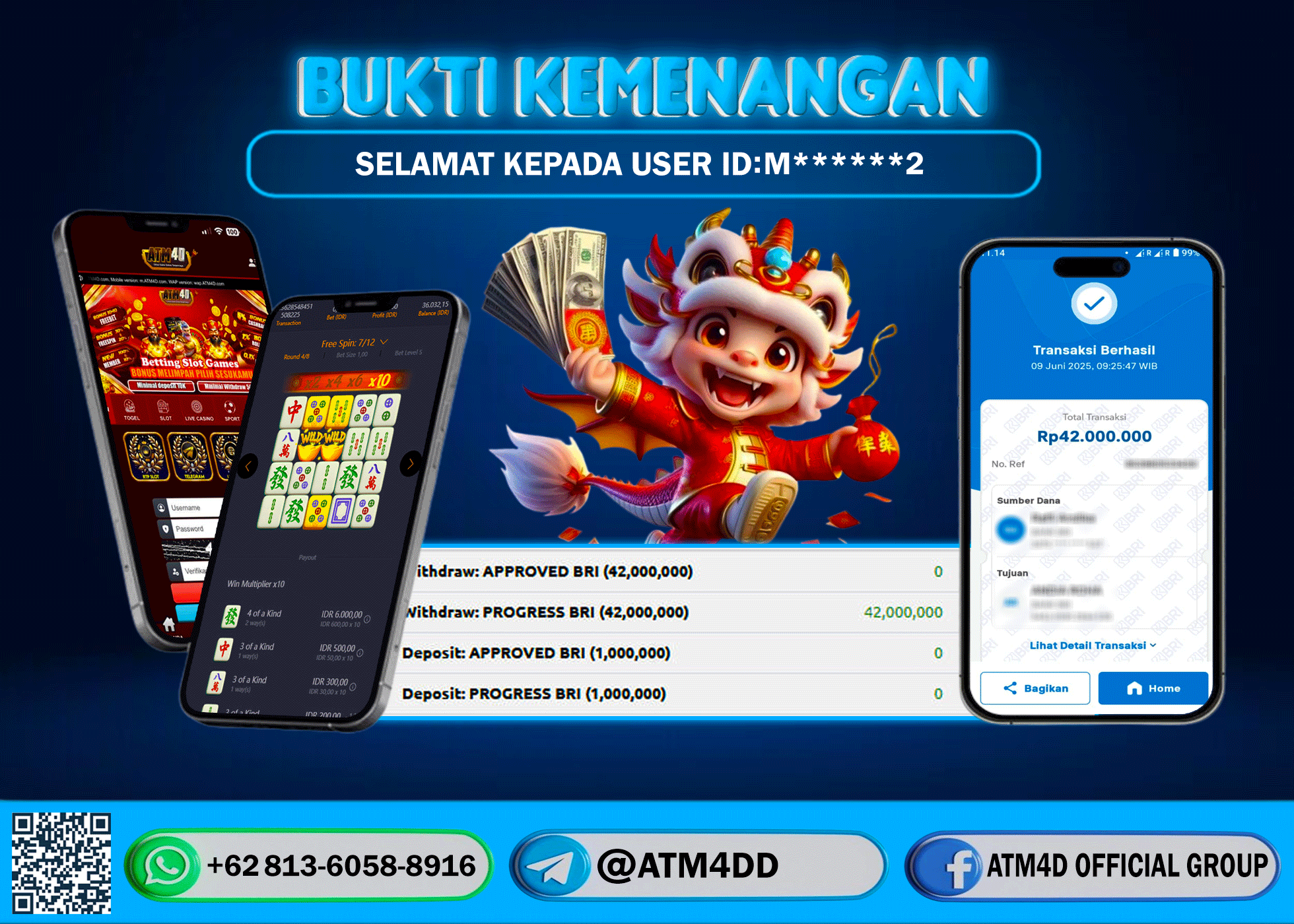 Jangan lewatkan kesempatan untuk meraih kemenangan besar. Daftar sekarang di ATM4D dan rasakan pengalaman bermain slot terbaik yang pernah ada! Putar gulungan, menangkan jackpot, dan jadilah bagian dari komunitas pemain sukses kami!
