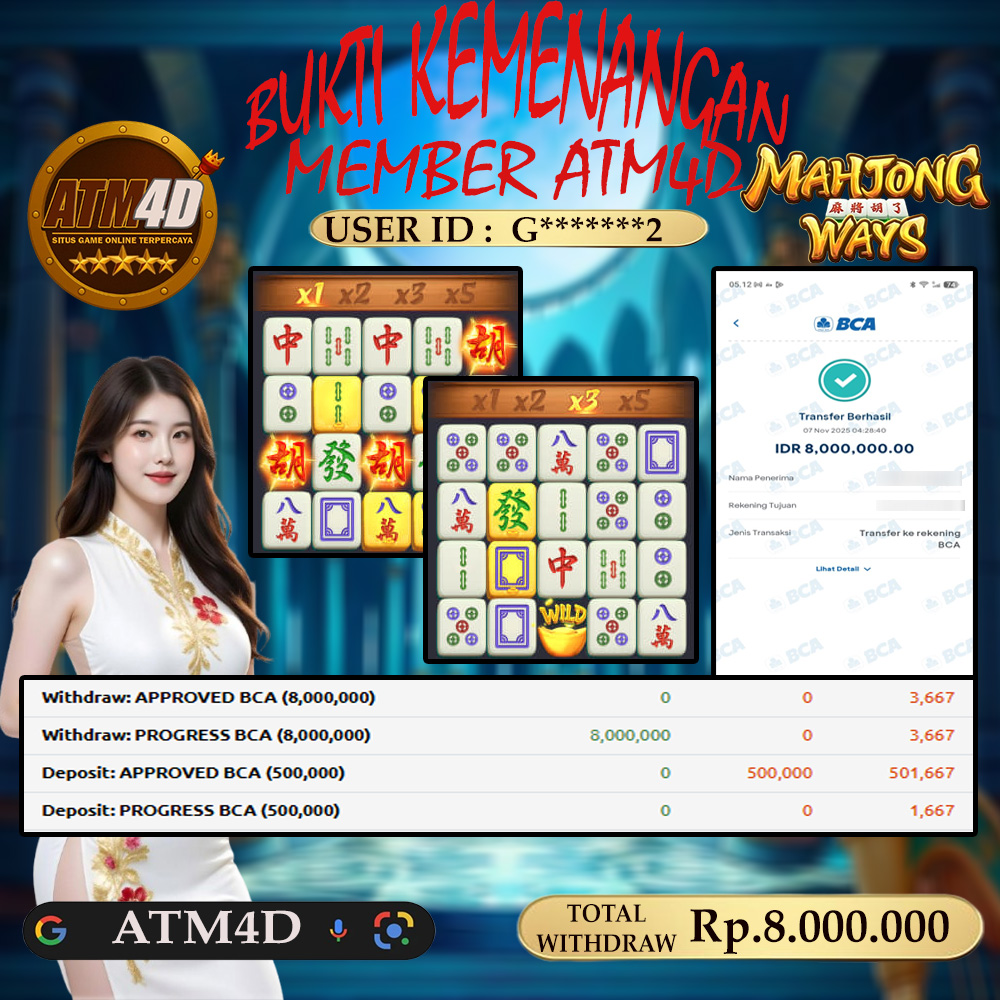 Selamat Kepada Member Yang Berhasil Mendapatkan Jackpot Dipermainan PG SOFT, Berikut Bukti Jackpot Member Di Situs ATM4D