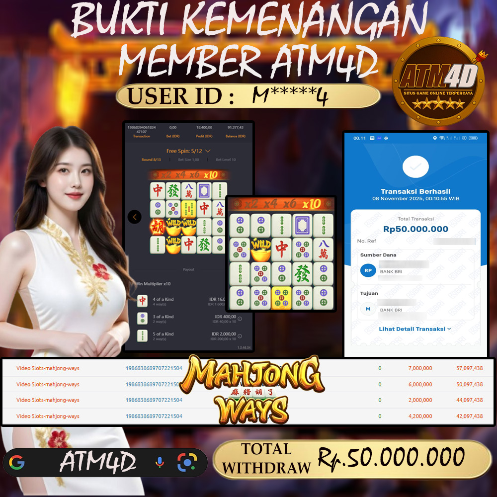 Jangan lewatkan kesempatan untuk meraih kemenangan besar. Daftar sekarang di ATM4D dan rasakan pengalaman bermain slot terbaik yang pernah ada! Putar gulungan, menangkan jackpot, dan jadilah bagian dari komunitas pemain sukses kami!
