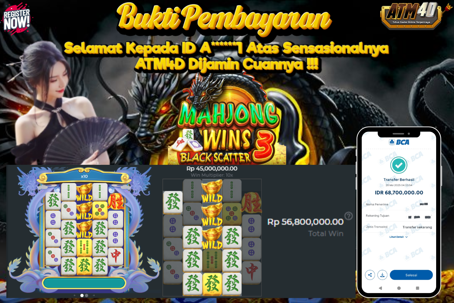 Jangan lewatkan kesempatan untuk meraih kemenangan besar. Daftar sekarang di ATM4D dan rasakan pengalaman bermain slot terbaik yang pernah ada! Putar gulungan, menangkan jackpot, dan jadilah bagian dari komunitas pemain sukses kami!