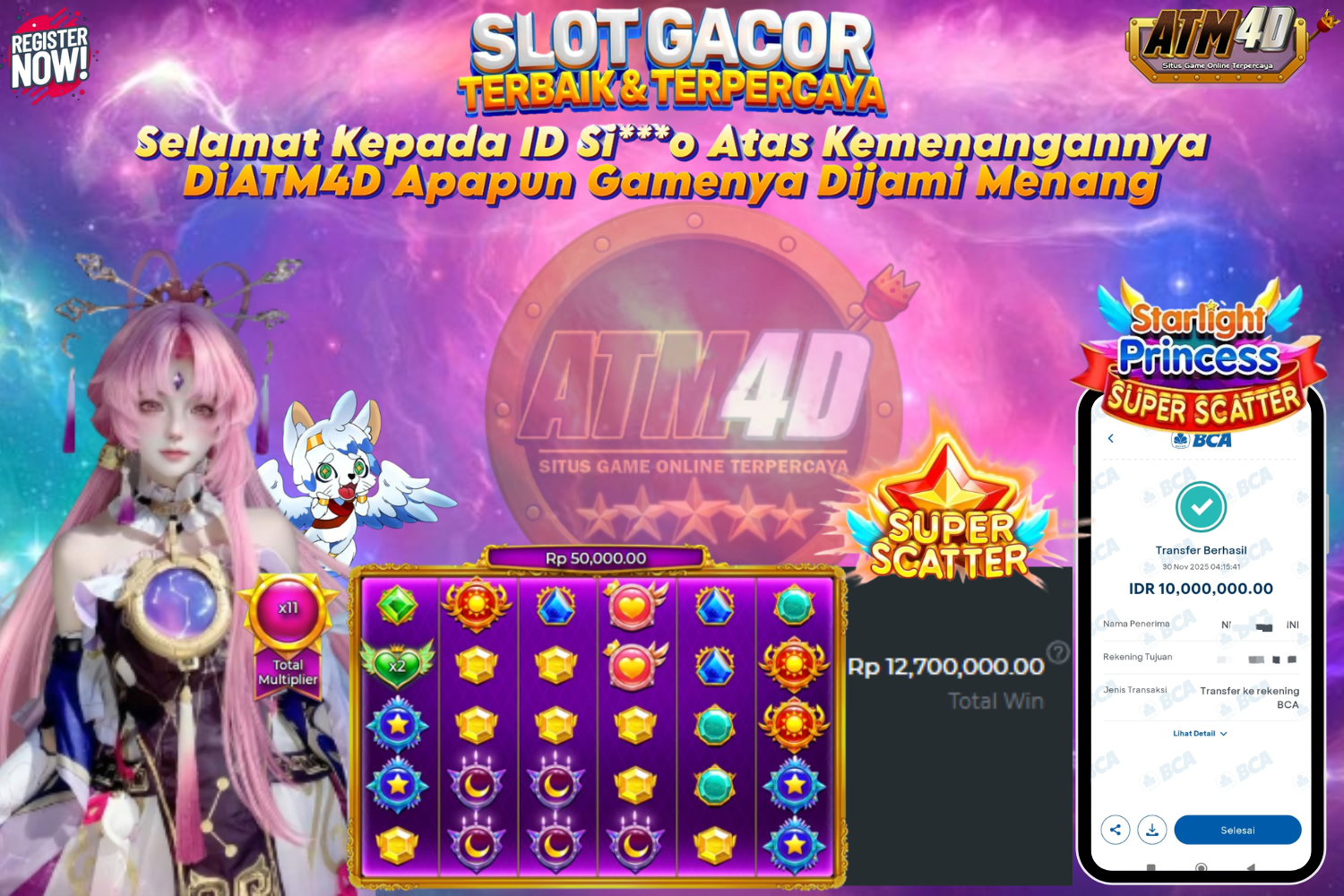 Jangan lewatkan kesempatan untuk meraih kemenangan besar. Daftar sekarang di ATM4D dan rasakan pengalaman bermain slot terbaik yang pernah ada! Putar gulungan, menangkan jackpot, dan jadilah bagian dari komunitas pemain sukses kami!