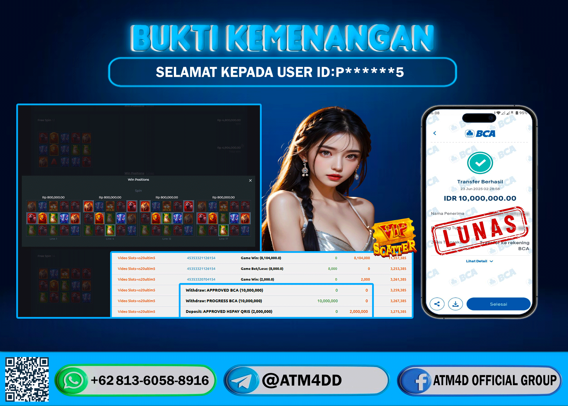 Selamat Kepada Member Yang Berhasil Mendapatkan Jackpot Dipermainan PRAGMATIC PLAY, Berikut Bukti Jackpot Member Di Situs ATM4D