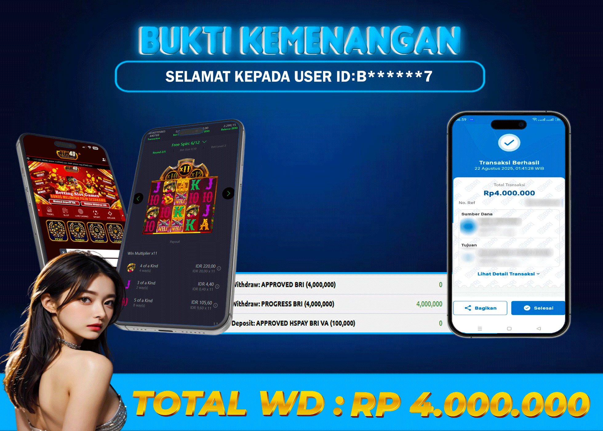 Jangan lewatkan kesempatan untuk meraih kemenangan besar. Daftar sekarang di ATM4D dan rasakan pengalaman bermain slot terbaik yang pernah ada! Putar gulungan, menangkan jackpot, dan jadilah bagian dari komunitas pemain sukses kami!