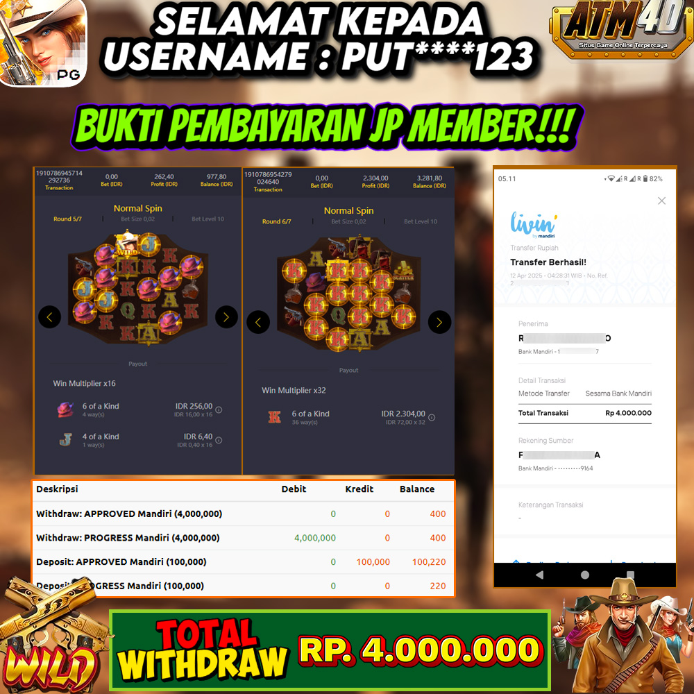 Selamat Kepada Member Yang Berhasil Mendapatkan Jackpot Dipermainan PG SOFT, Berikut Bukti Jackpot Member Di Situs ATM4D