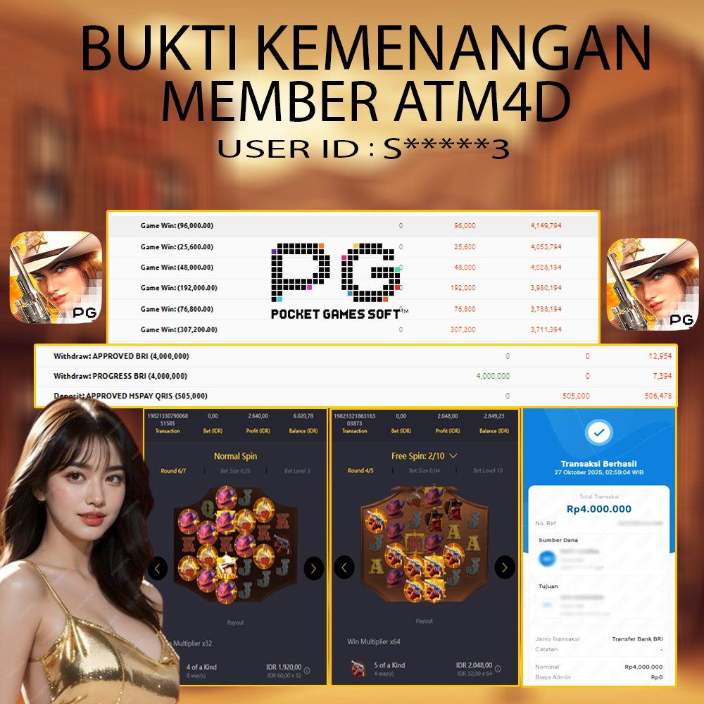 Selamat Kepada Member Yang Berhasil Mendapatkan Jackpot DipermainanPG SOFT, Berikut Bukti Jackpot Member Di Situs ATM4D