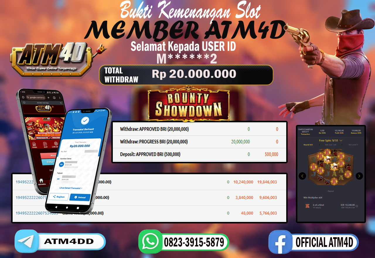 Jangan lewatkan kesempatan untuk meraih kemenangan besar. Daftar sekarang di ATM4D dan rasakan pengalaman bermain slot terbaik yang pernah ada! Putar gulungan, menangkan jackpot, dan jadilah bagian dari komunitas pemain sukses kami!
