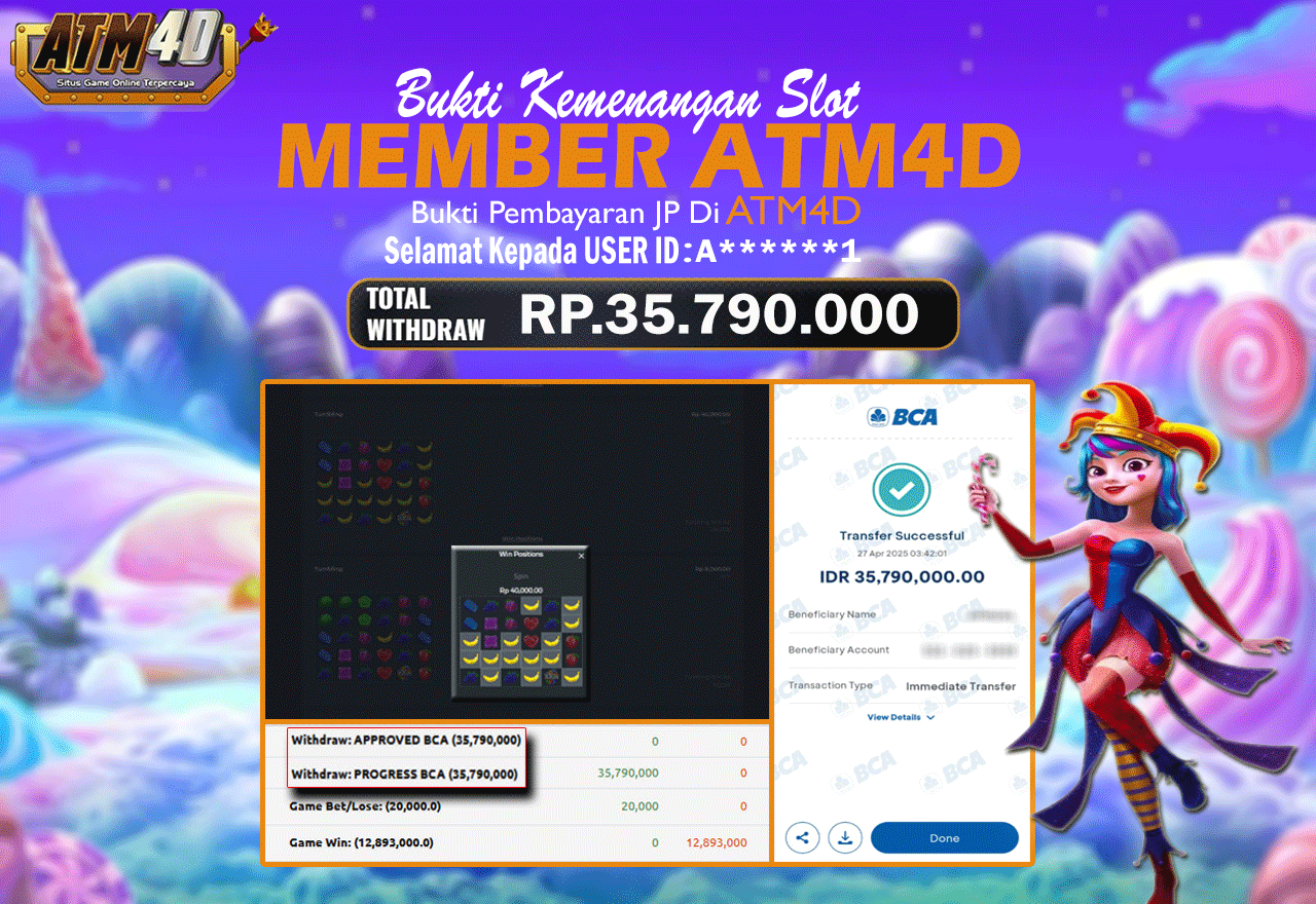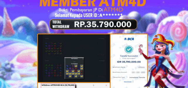 Jangan lewatkan kesempatan untuk meraih kemenangan besar. Daftar sekarang di ATM4D dan rasakan pengalaman bermain slot terbaik yang pernah ada! Putar gulungan, menangkan jackpot, dan jadilah bagian dari komunitas pemain sukses kami!