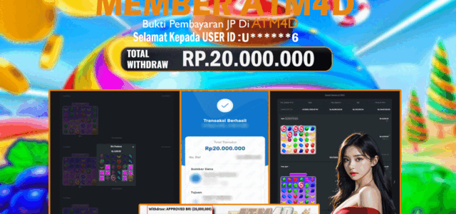 Jangan lewatkan kesempatan untuk meraih kemenangan besar. Daftar sekarang di ATM4D dan rasakan pengalaman bermain slot terbaik yang pernah ada! Putar gulungan, menangkan jackpot, dan jadilah bagian dari komunitas pemain sukses kami!